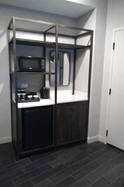 • Mini fridge + microwave